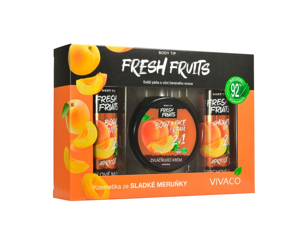Darčeková sada kozmetiky so šťavnatou vôňou zrelých marhúľ prinesie spestrenie do každodenných kúpeľňových rituálov a vyvolá hrejivé spomienky na leto plné slnka. Praktická kombinácia sprchového gélu, zvláčňujúceho krému na tvár aj telo a ľahkého telového mlieka sa postará o potrebnú výživu, hydratáciu a starostlivosť o pokožku celého tela počas kúpeľa aj po nej. Všetky produkty z tejto kolekcie sprevádza svieža ovocná vôňa, ktorá dodá novú energiu a podporí dobrú náladu. Skvelý tip na darček pre všetkých milovníkov a milovníčky ovocných vôní.
