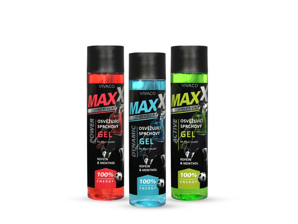 Darčeková sada osviežujúcich sprchových gélov Maxx Sportiva DYNAMIC, ACTIVE a POWER poteší nielen všetkých vášnivých športovcov. Sprchové gély s povzbudzujúcim kofeínom a sviežim mentolom dodajú telu nový príval energie a každého muža spoľahlivo vrátia späť do formy. Doprajte sebe alebo svojim blízkym novú dávku energie, neodolateľnú vôňu a intenzívnu sviežosť na celý deň.
