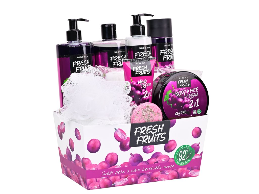 Darčekové balenie kozmetiky s úžasnou vôňou hrozna prinesie spestrenie do každodenných kúpeľových rituálov. Praktická kombinácia voňavých produktov sa postará o potrebnú výživu, hydratáciu a starostlivosť o pokožku celého tela počas kúpeľa aj po ňom. Ak sa rozhodnete darovať toto krásne darčekové balenie, máte istotu, že obdarovaný dostane výber toho najlepšieho zabaleného do darčekovej krabice, ktorá následne skvele poslúži na ukladanie rôznych drobností.