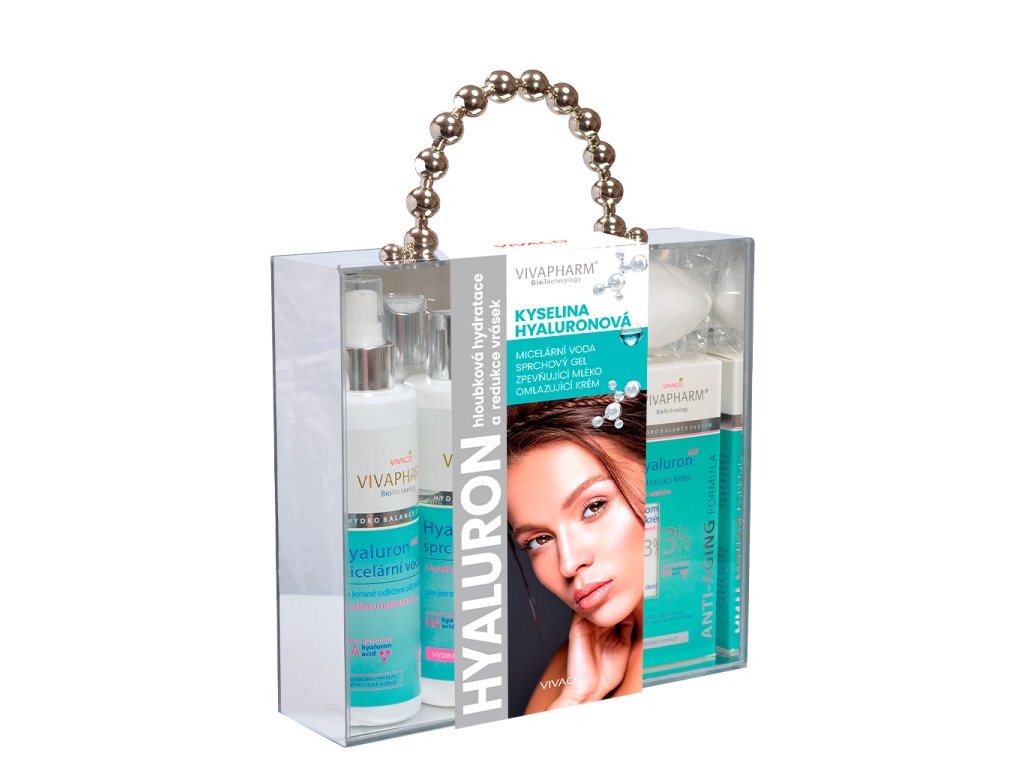 Darčekové balenie kozmetiky s kyselinou hyalurónovou v sebe ukrýva vybranú kombináciu produktov určených pre starostlivosť o pleť aj telo, ktoré cieli na perfektnú hydratáciu a redukciu viditeľných prejavov starnutia pokožky. Kozmetika s kyselinou hyalurónovou pleť doslova napumpuje vlahou a dodá jej mladistvý a svieži vzhľad.