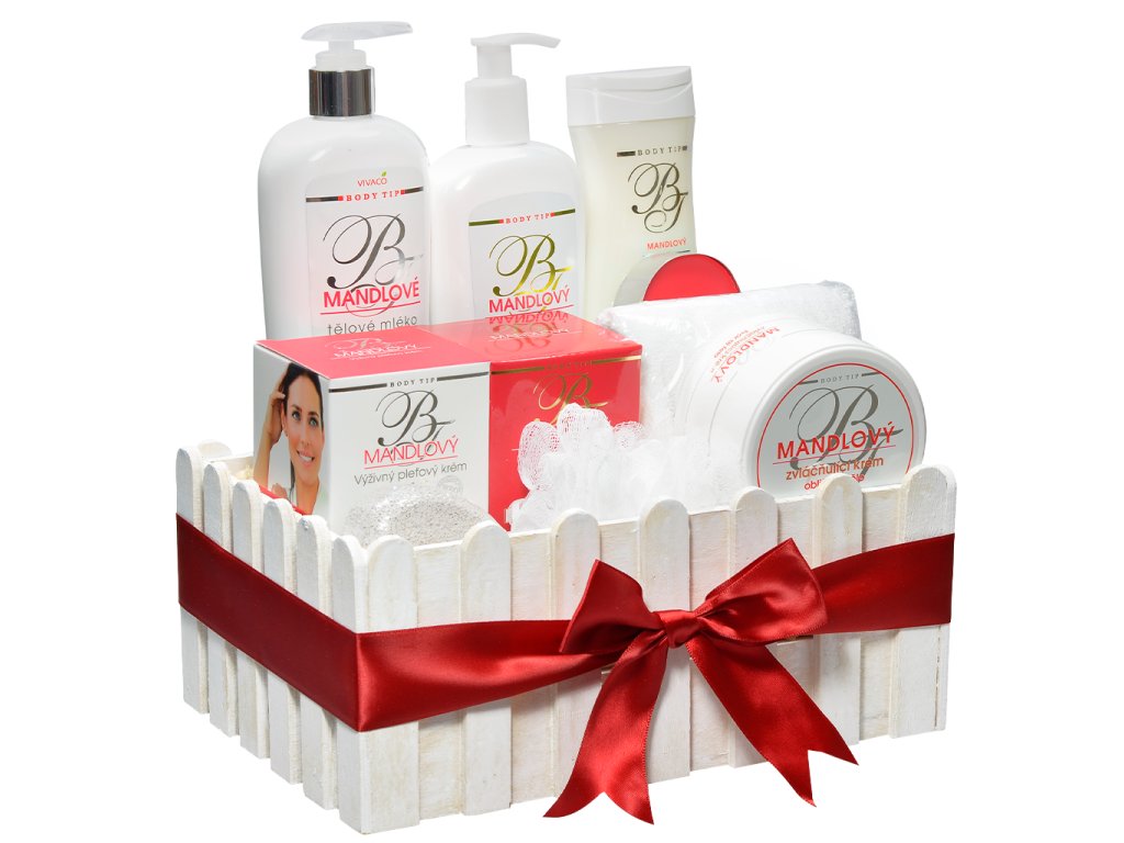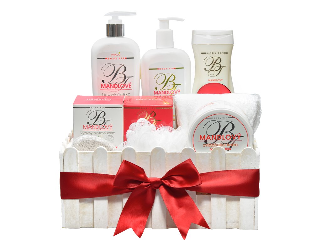 Exkluzívny darčekový kôš tradičnej regeneračnej kozmetiky s mandľovým olejom poteší každú dámu. Produkty tejto kolekcie využívajú silne hydratačné účinky prírodného mandľového oleja, ktorý báječne premastí aj extrémne vysušenú pokožku a zároveň zjemní a vyživí starnúcu a zrelú pleť. V tomto bohatom darčekovom koši darujete osvedčenú kombináciu produktov pre prepychovú starostlivosť od hlavy až po päty.